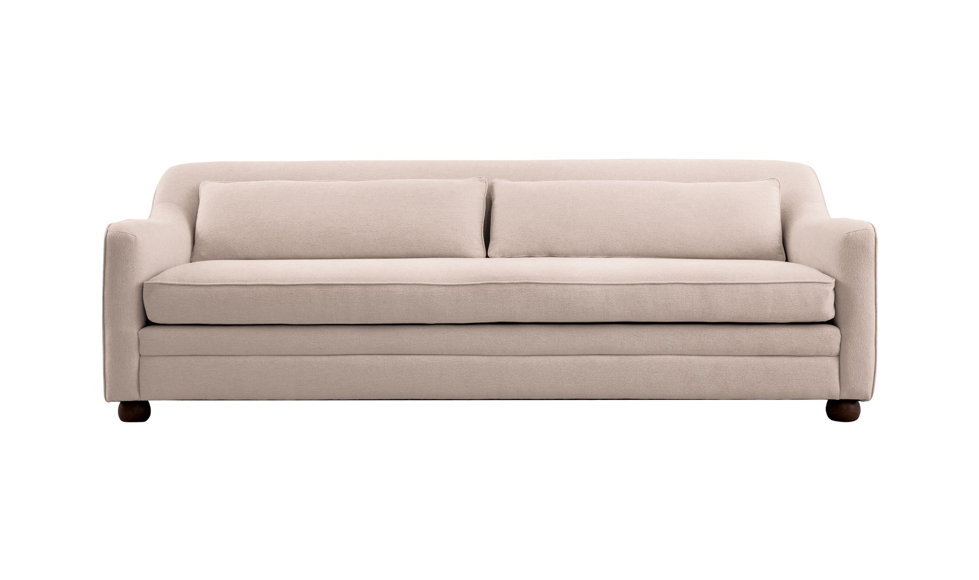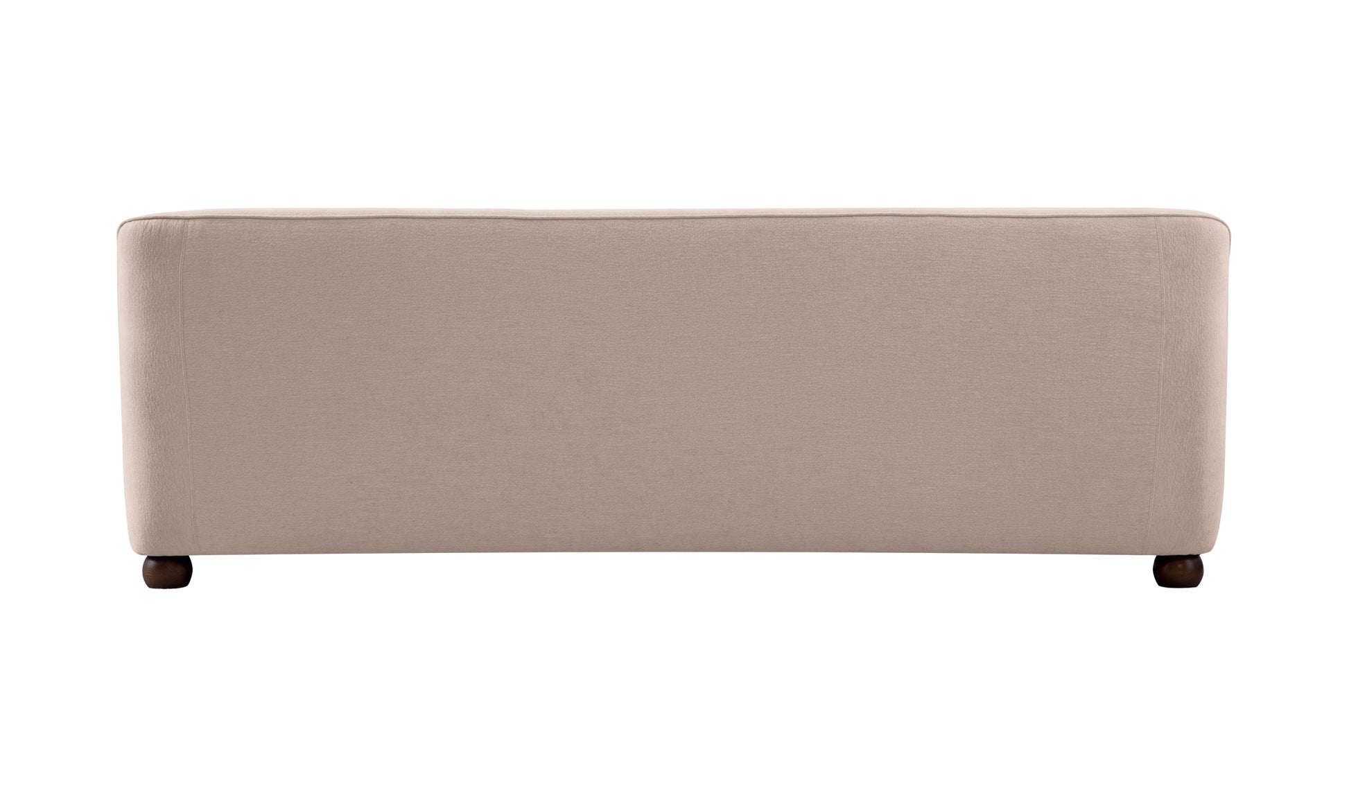 The Amira sofa offers warmth and comfort with its gracefully curved high back and subtly flared arms. Upholstered in durable polyester fabric with piping cushion details. The feather and fiber topped bench seat cushion creates luxurious repose. Generously proportioned lumbar cushions and solid wood feet complete this centerpiece.
