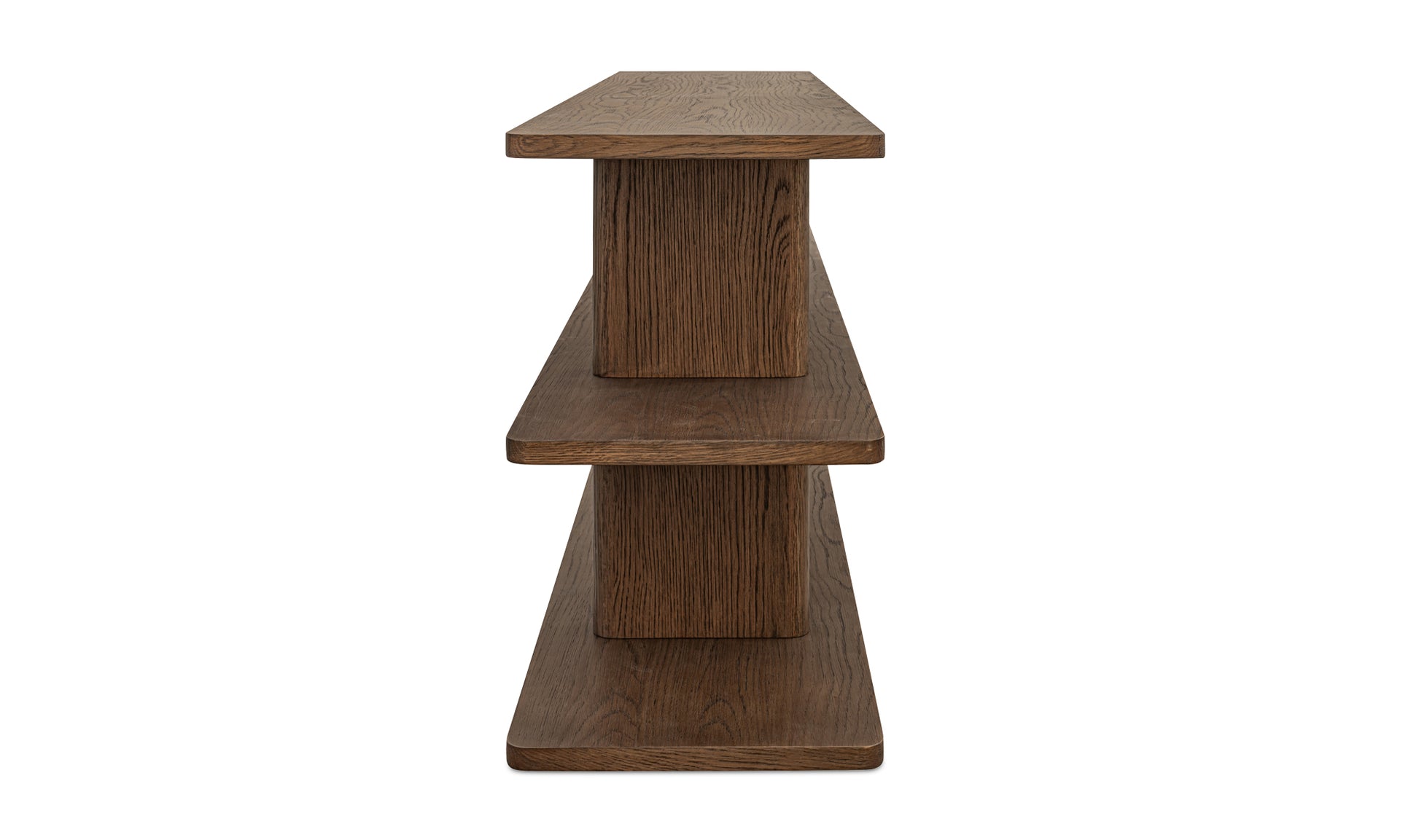The Casey bookcase embodies contemporary elegance, marrying form and function with understated sophistication. An innovative vertical support with a bullnose edge softens the silhouette, introducing an organic feel to the rectangular shelving.