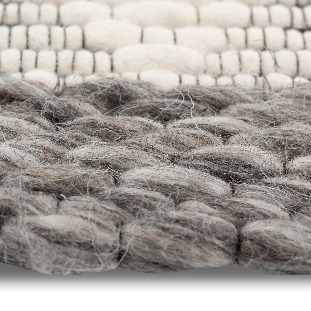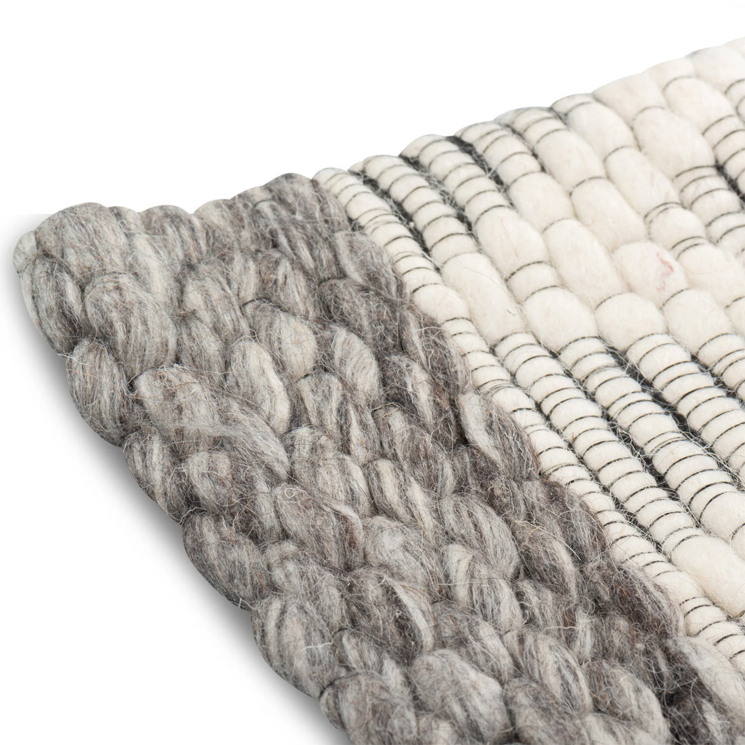 Add a touch of nature and Zen tone to your space with these modern rugs. Handwoven by expert weavers with the highest quality New Zealand Wool available; each individual loop of this rug is felted resulting in a luxurious and warm feel. Available in subtle shades of grey, ivory and brown, these rugs make a perfect backdrop for an eclectic modern room. As a Fair-Trade product, each piece made supports better living and working conditions for the artisans who crafted it.