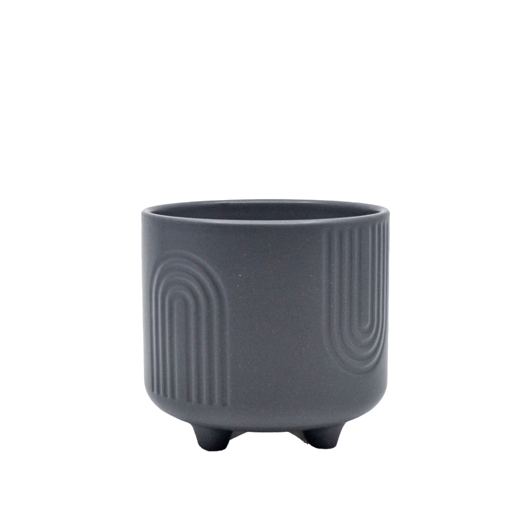 Ceramic planter with embossed details. The perfect colourful addition to your coffee table or plant shelf.
