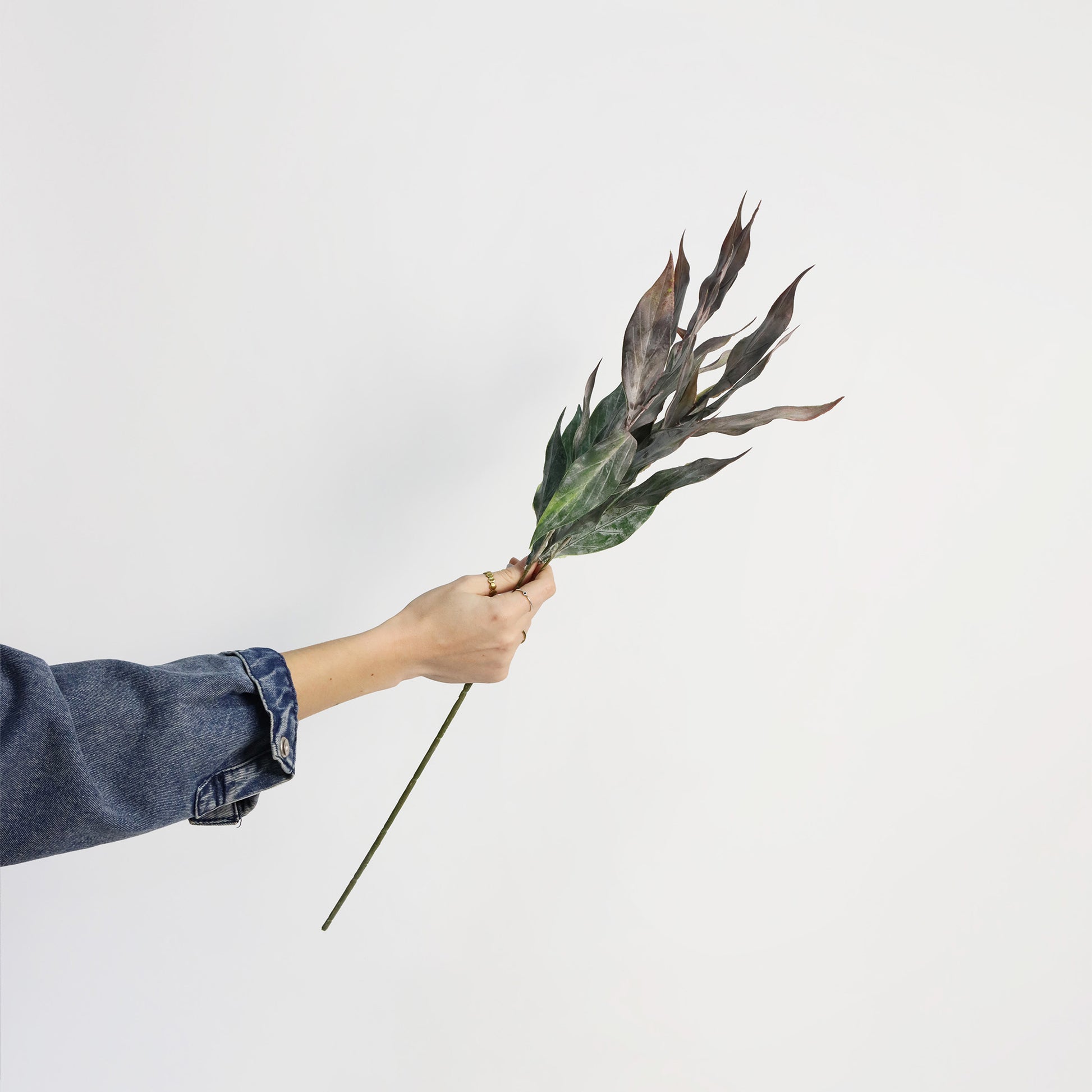Faux Frosted Burgundy Green Lanceolate Leaf Spray