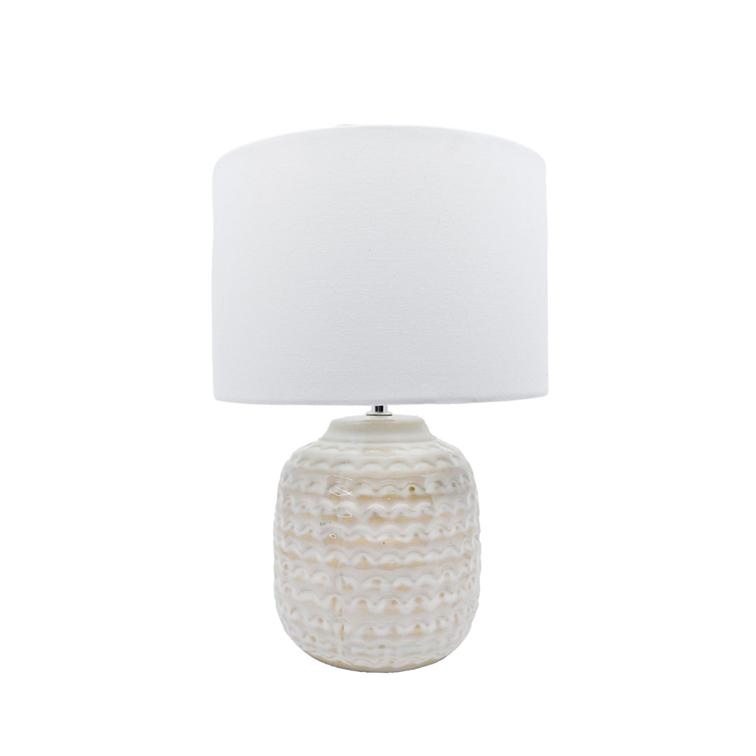 Ivory ceramic table lamp that is sure to complete your decor. A beautiful textured finish and a classic style.