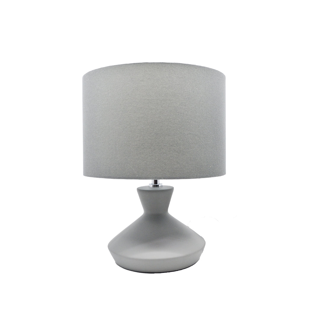 Add some modern flair to your tables with this simple, grey table lamp. A unique shape sure to draw attention.