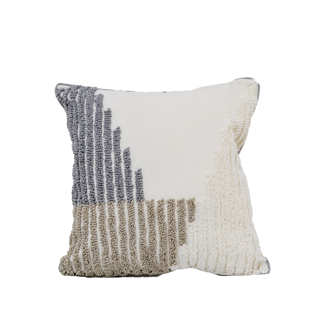 This classic pillow brings some visual interest with multi coloured looped patterns.