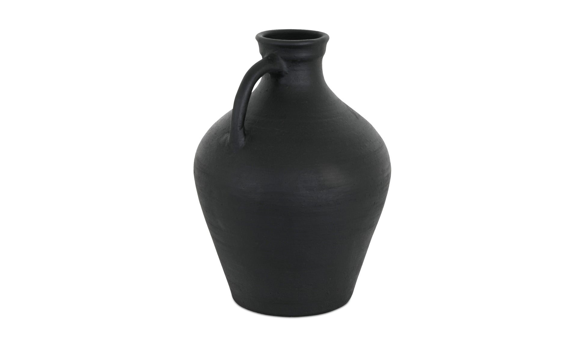 Inspired by treasures one might stumble upon in an antique store, each Lyra vase is imbued with its own unique character, thanks to the individual handcrafting process. Hand-thrown terracotta from India brings ancient elegance into the modern home, complete with a traditional Greco-Roman handle design that echoes historical relics.