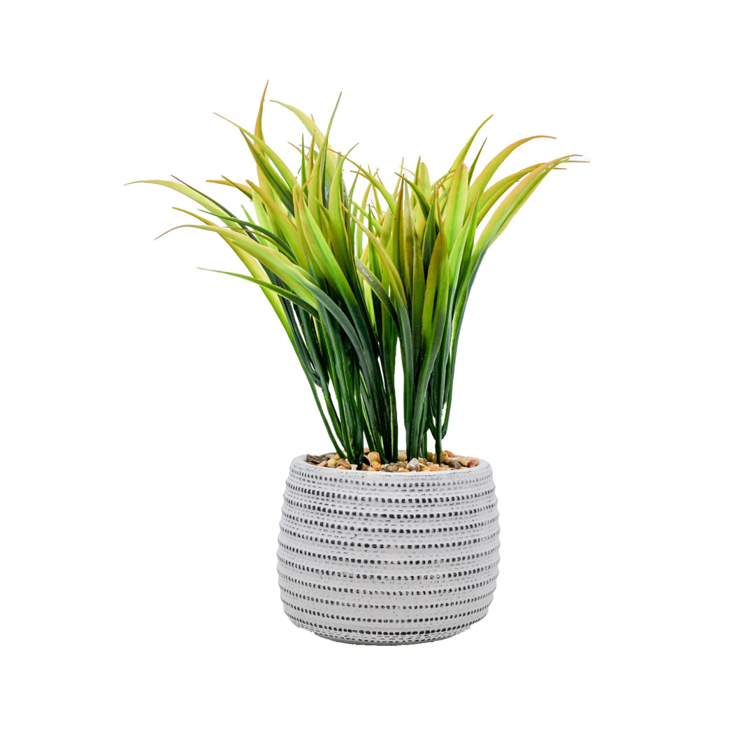 Bring some greenery into your space with this adorable artificial plant in a dot textured cement pot. These plants will fit in perfectly with any style of decor.