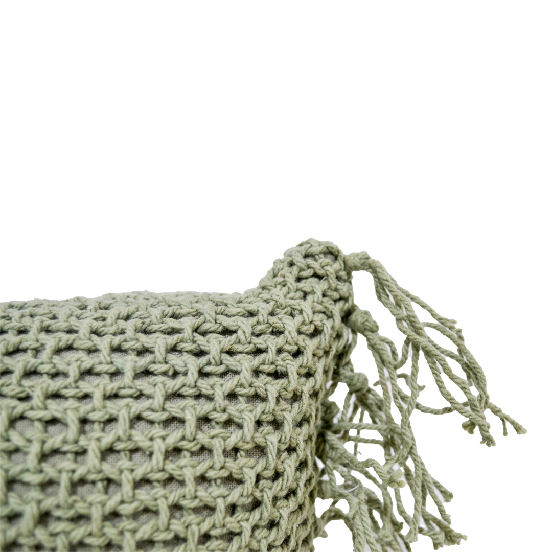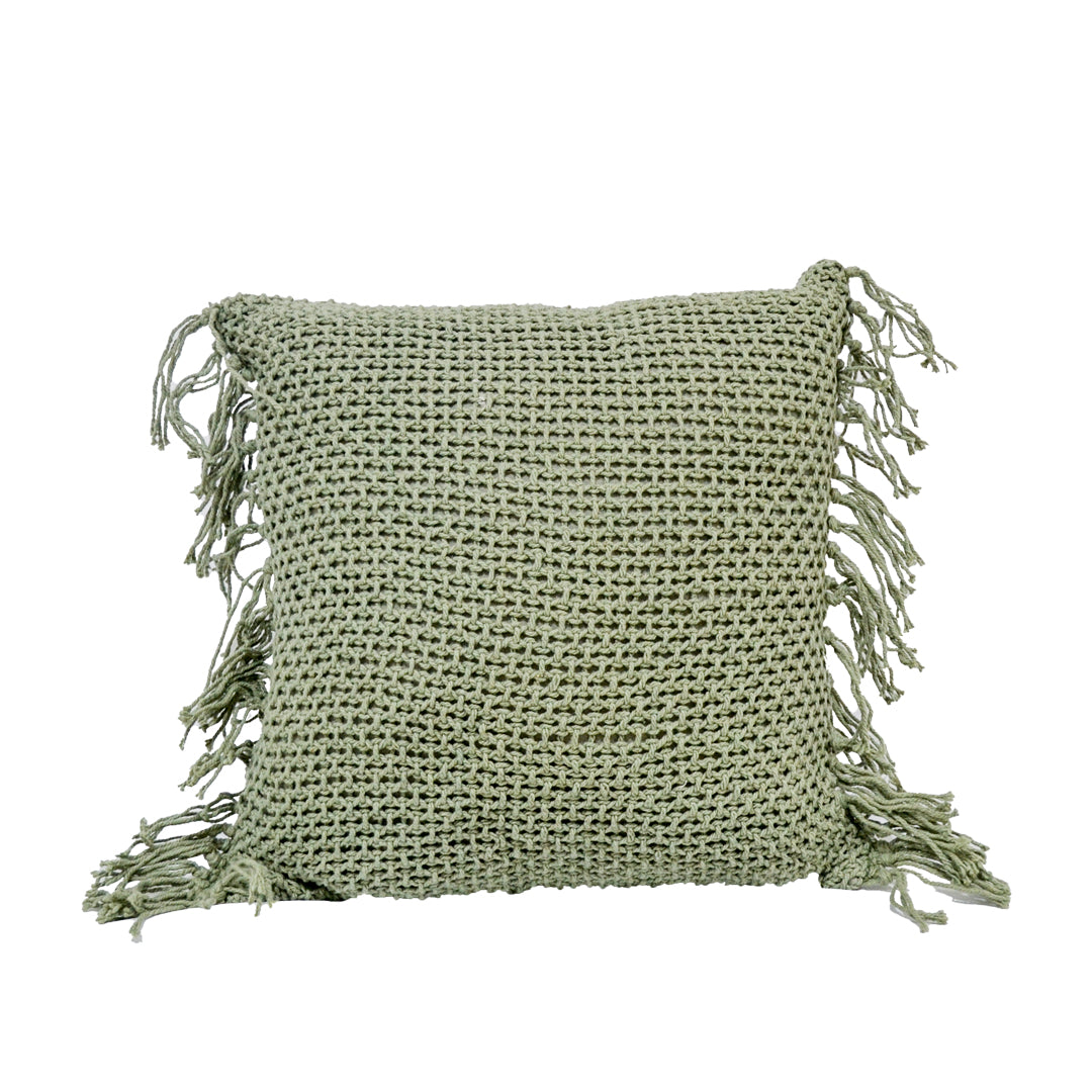 This cushion is the perfect pop of subtle colour. A woven textured finish with fringe edging.