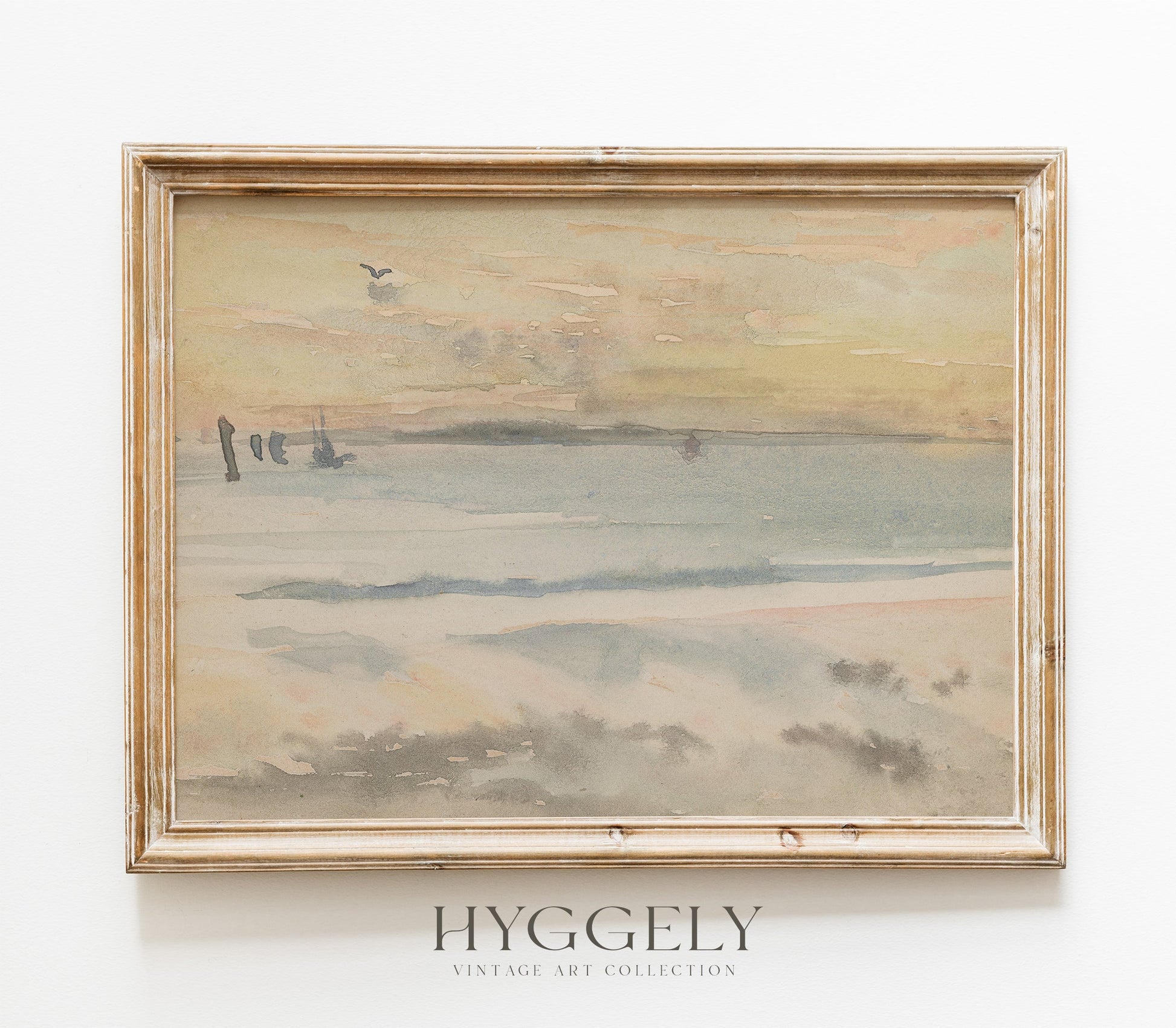 Hyggely Vintage Art Print Collection - Watercolor Landscape artwork with muted tones and sunset sky