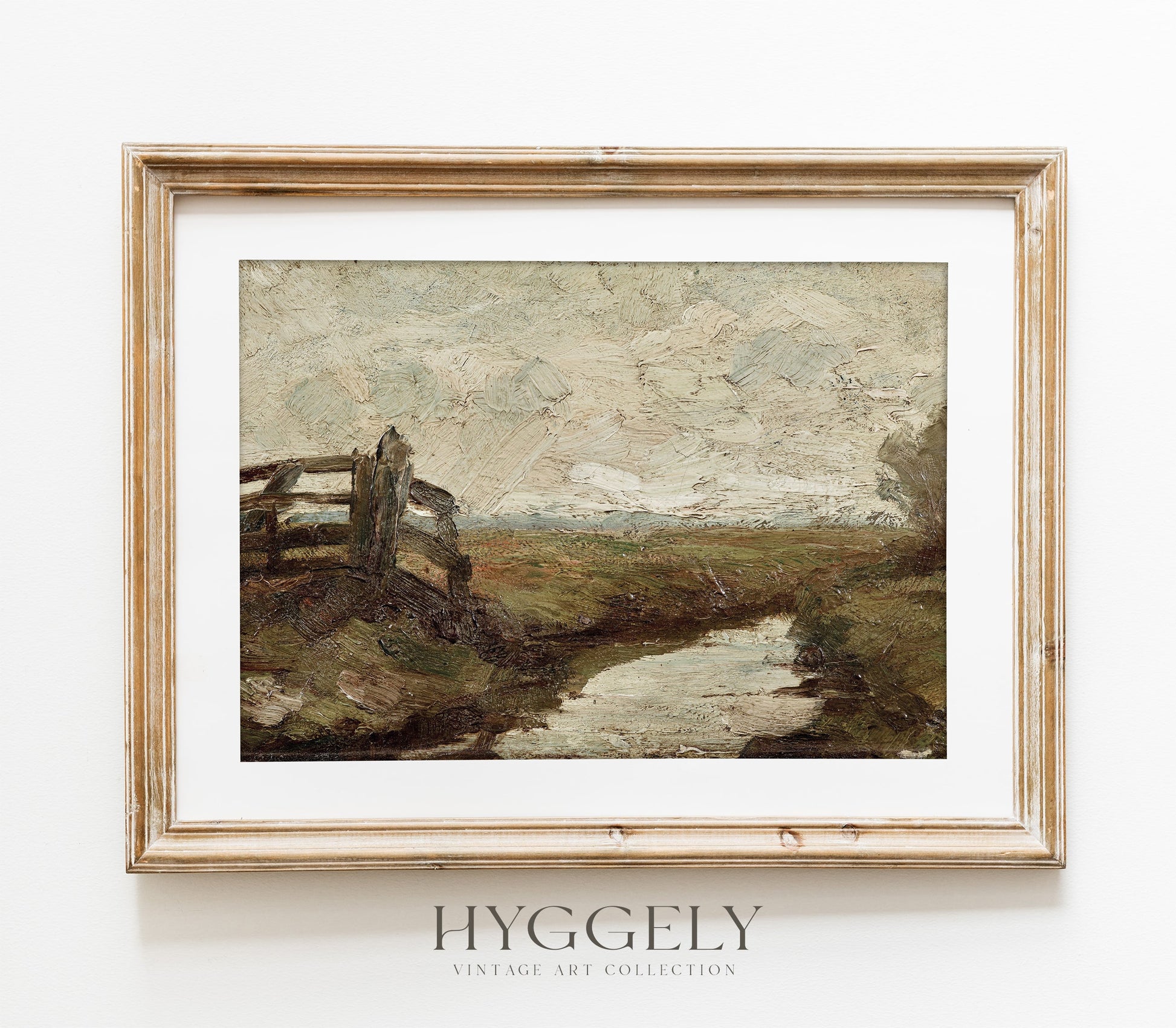 Hyggely Vintage Art Print Collection - Farmland and Stream Landscape Painting
