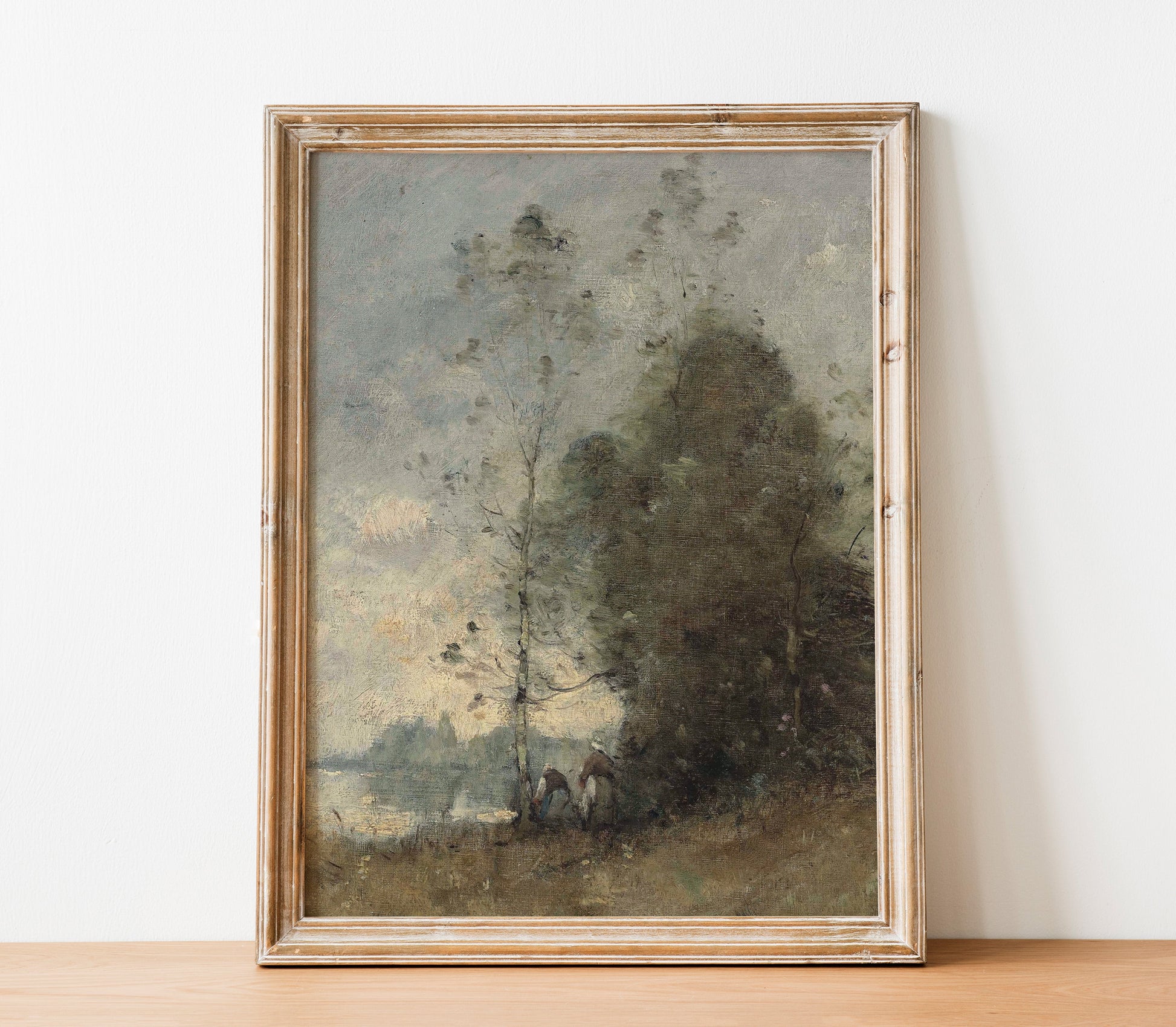 Hyggely Vintage Art Print Collection - Antique Muted Green Landscape Painting