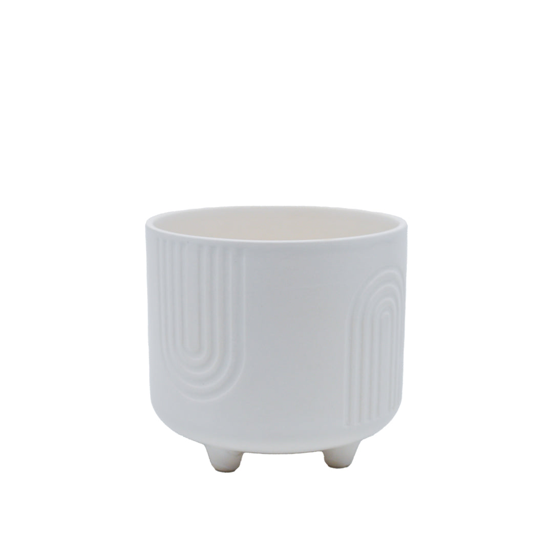 Ceramic planter with embossed details. The perfect modern addition to your coffee table or plant shelf.
