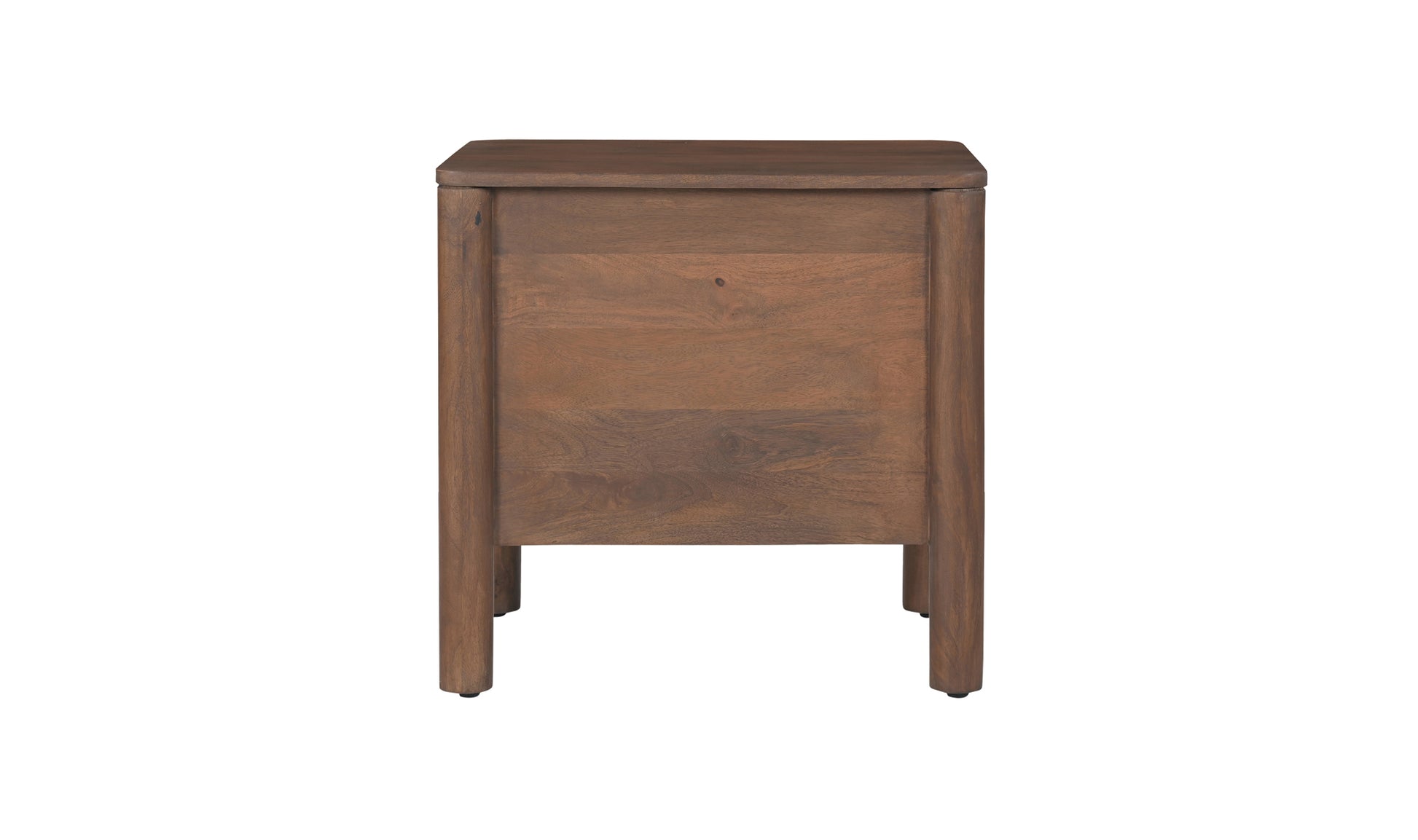 Modern aesthetics effortlessly blend with the refined simplicity of traditional Shaker design in the Wiley nightstand. Meticulously crafted, its elegant form is defined by sleek, geometric curves that add a captivating touch of modernity. The post legs stand as pillars of strength, grounding the nightstand with their understated presence. A showcase of intricate scalloped edge details and heavy brass handles, these delicate elements lend a timeless charm reminiscent of classical influences.